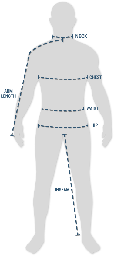 Use your chest, neck, and arm length to find the right size for shirts and outerwear. For pants, belts, and shorts, go by your waist and inseam. Here’s how to measure: